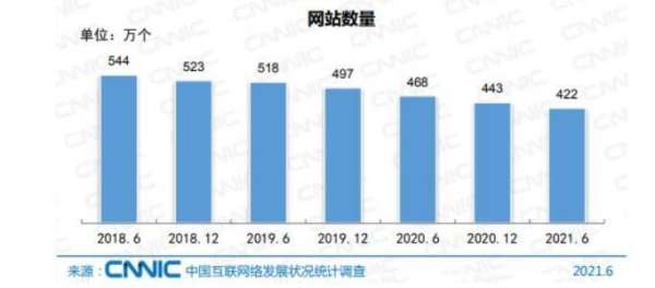 CNNIC近期發(fā)布2021年中國(guó)網(wǎng)站最新數(shù)量報(bào)告,截至2021年6月,我國(guó)網(wǎng)站數(shù)量累計(jì)為422萬個(gè)!